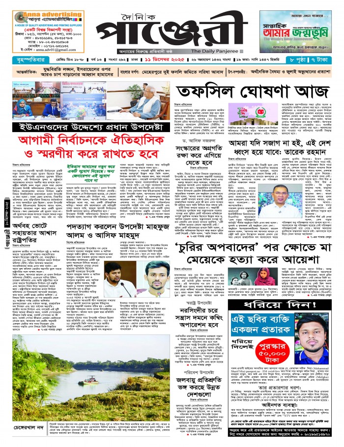 বৃহস্পতিবার, ১১ ডিসেম্বার ২০২৫